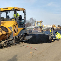 Unser Spektrum reicht vom Neubau der Straßen bis über die Sanierung, durch Fräsen und Neueinbau. Dabei verfügen wir über den erforderlichen Maschinenpark aller nötigen Größen bei Fertigern, Walzen und Fräsen. Die hauseigene Logistik bringt das Mischgut von unseren Mischanlagen auf die Baustelle. Hierbei arbeiten wir mit modernsten Logistiksystemen, die eine enge und wirtschaftliche Taktung ermöglichen.
