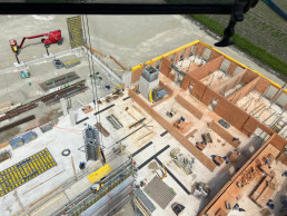 Diese Baustelle is eine Kooperation mit Firma Glass. Es wurden 440 Tonnen Stahlbewehrungen sowie Einzel-/Streifenfundamente verbaut.